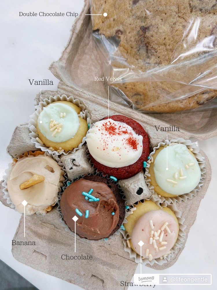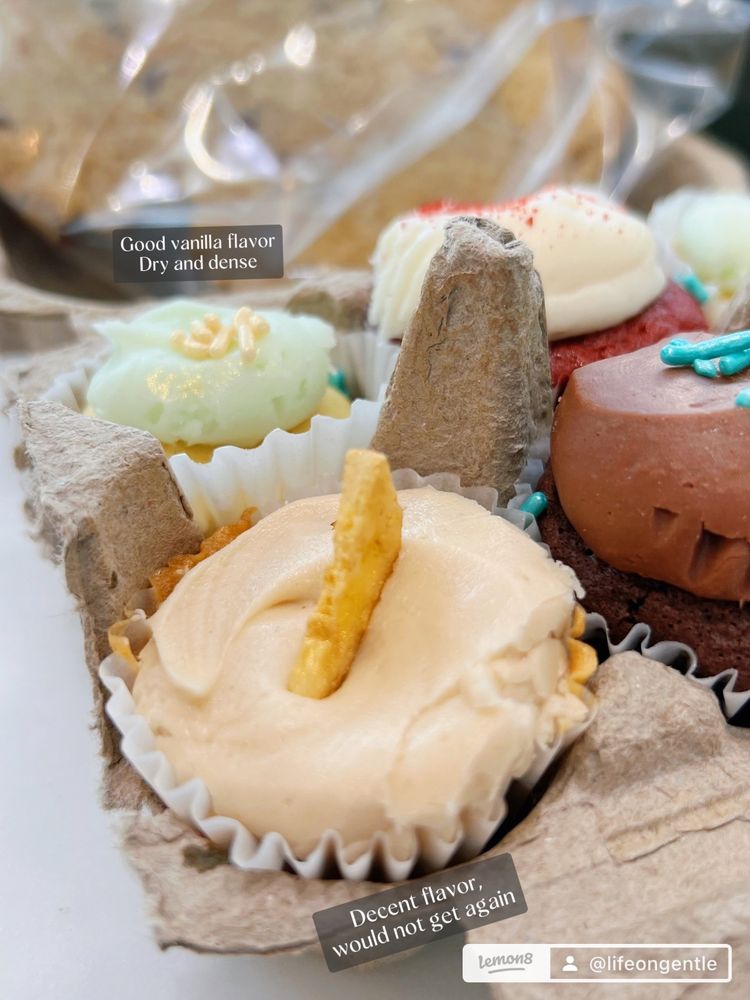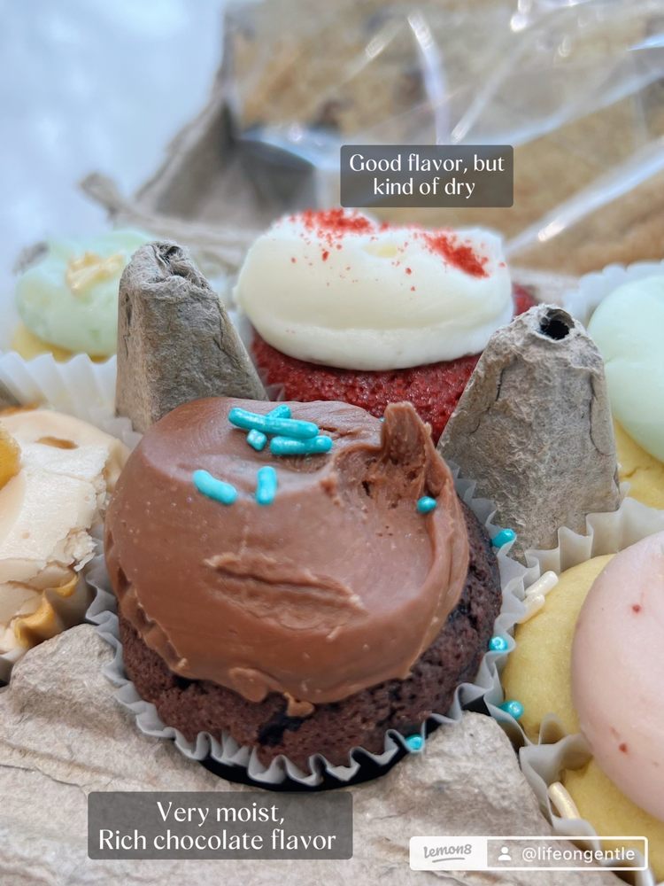 “ Delicious and fun flavors for these mini cupcakes! I forgot everything that was ordered, but each one was nice and moist and had a perfect dallop of frosting without being overwhelming ”